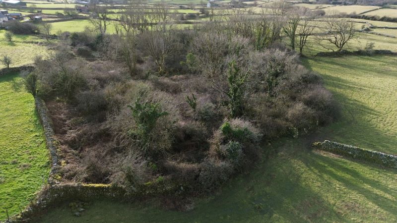 Llwyn Du – enclosed circular settlement (obscured by trees) – Penygroes SH47945397